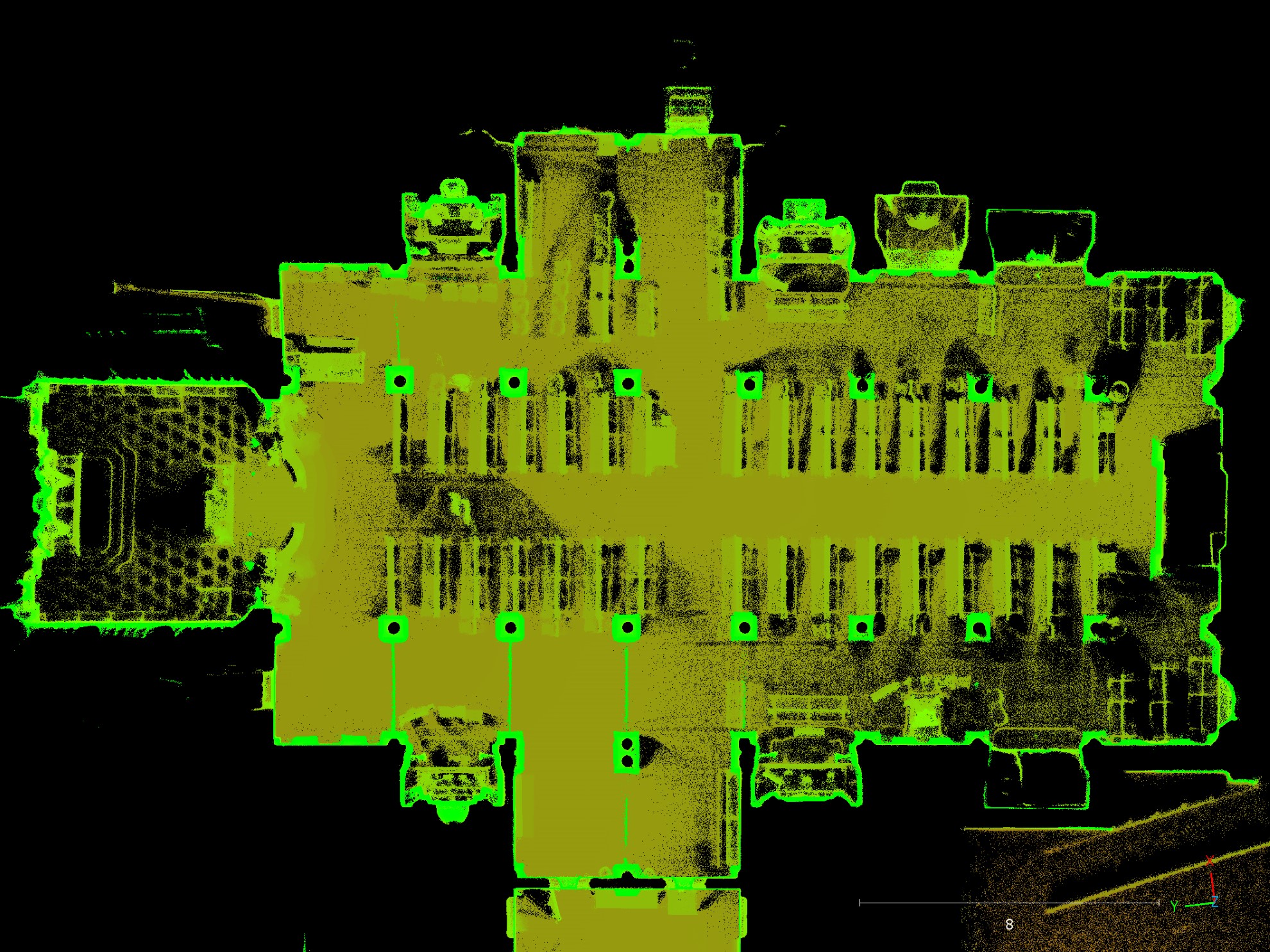 • Nuvola di Punti 3D (Point Cloud): Il modello digitale tridimensionale ad alta densità dell’intera struttura interna.